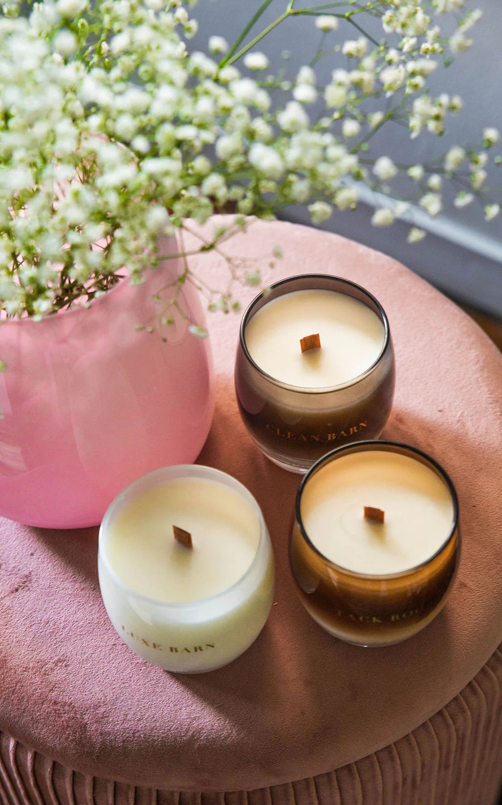 Clean Barn is warm and woodsy with notes of amber, sandalwood and vanilla.