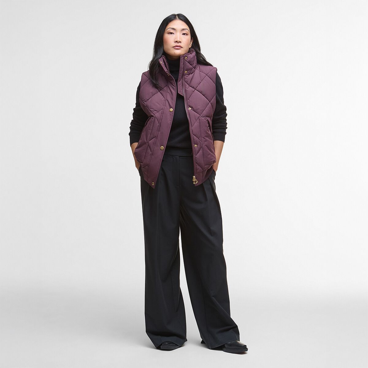 A tall, plushly lined stand collar tops this diamond-quilted vest packed with lightweight synthetic fill.
