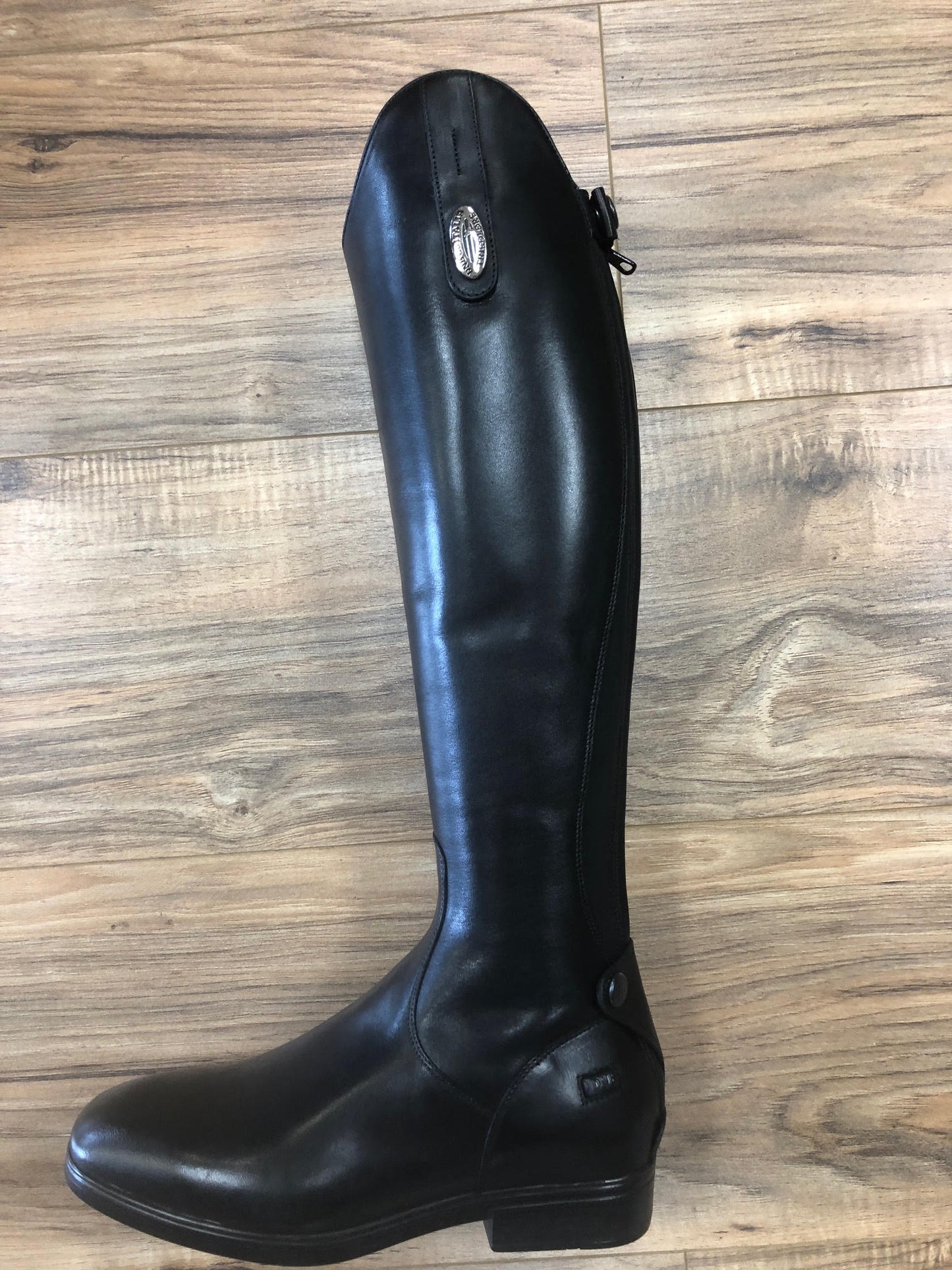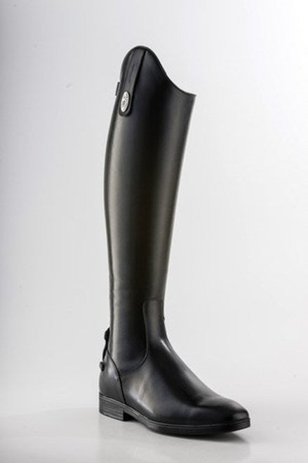 • Soft smooth calfskin leather, YKK rear zipper, elastic panel along the zipper allows a comfortable fit. An inlaid patch on the inner leg for a better performance and durability of the boot. The bottom zip guard includes a rear spur stud on a double level. Removable insole with activated carbon absorbs shock. New Tricolore Sole, light, elegant and of great performance.