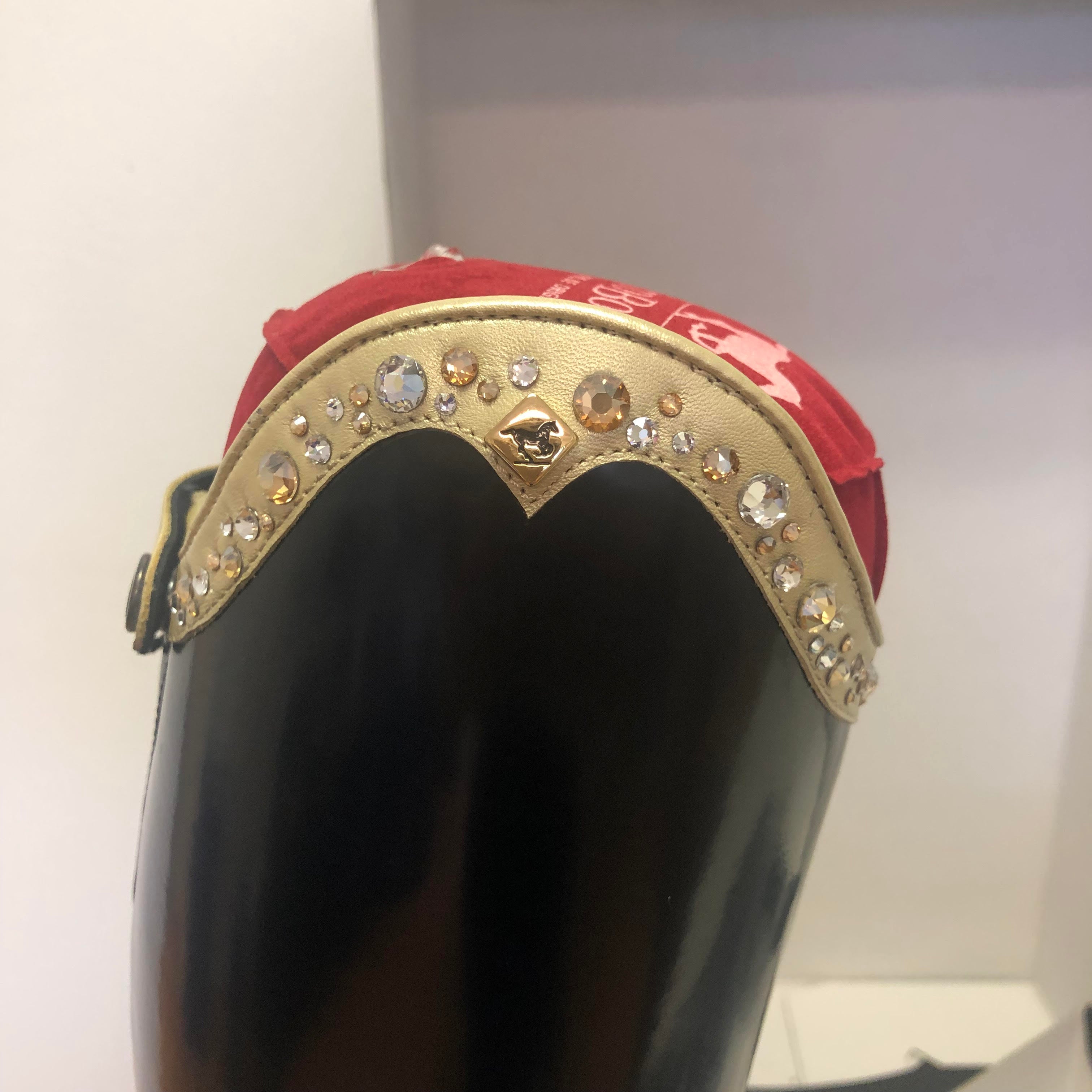 We put this top Rondine on a S2601 boot. The leg and foot were brushed. It was made to match her beautiful bridle so happy with the end result. You can send me images so we can help match up your tack, don't forget we can also work with KASK and use the same swatch to customize your helmet.